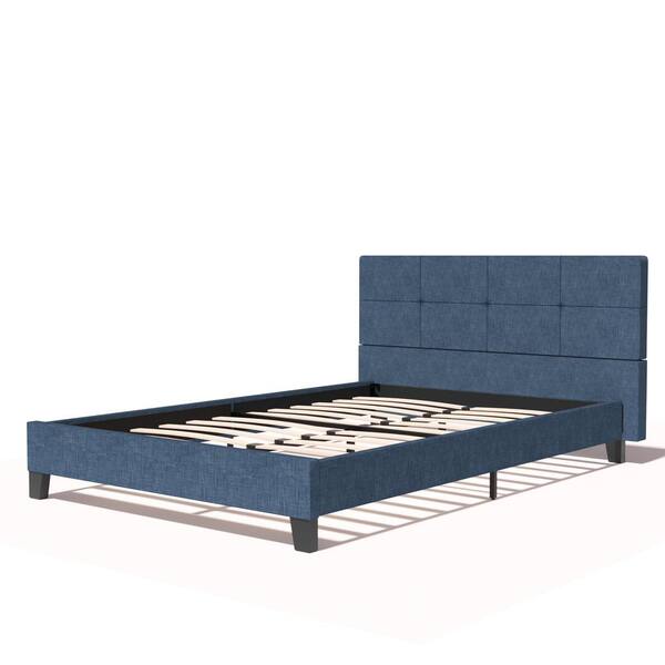 59.84 in. W Blue Metal Frame Full Tufted Square Stitched Headboard Platform Bed