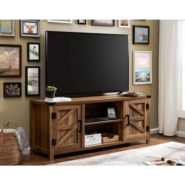 59 in. Brown TV Stand with 2-Drawers Fits TV's up to 65 in. with Cable Management