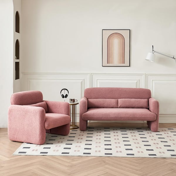 59 in. Pink Fabric 2-Seater Loveseat with Support Pillow for Apartment, Office, Living Room
