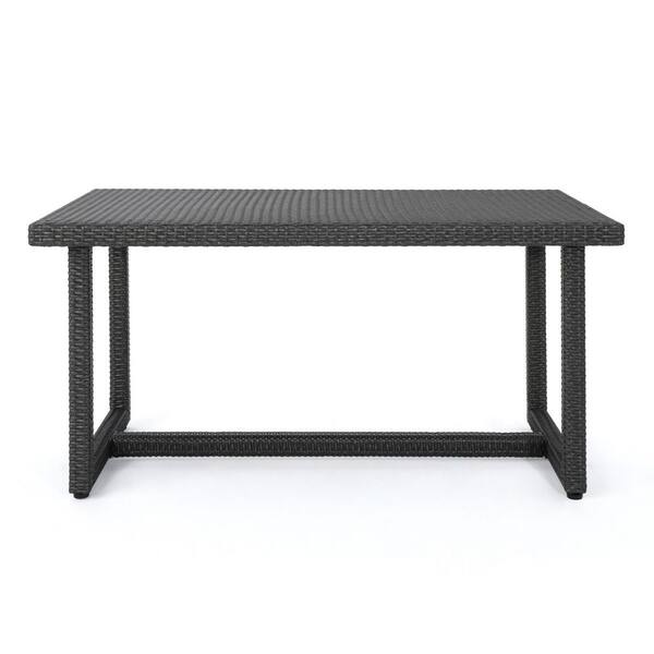 59 in. Rectangular Tabletop Rattan Outdoor Dining Table, Grey
