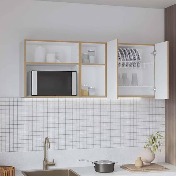 59 in. W x 13.5 in. D x 24 in. H Wood Ready to Assemble Storage Wall Cabinet Kitchen Floating Wall Cabinet, Natural Oak