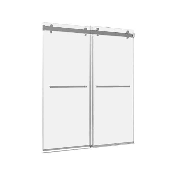 59 in. W x 76 in. H Frameless Double Sliding Shower Door in Chrome with Clear Tempered Glass
