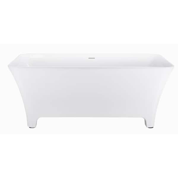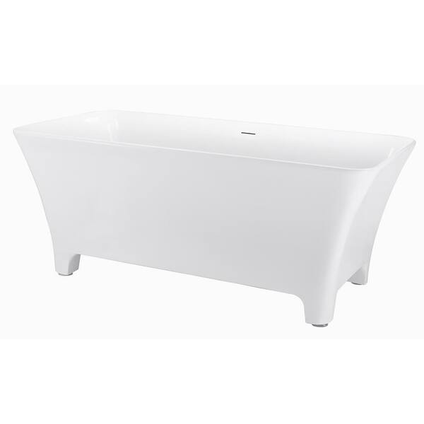 59 in. x 28 in. Acrylic Non-Whirlpool Soaking Bathtub with Stands Center Drain in Glossy White