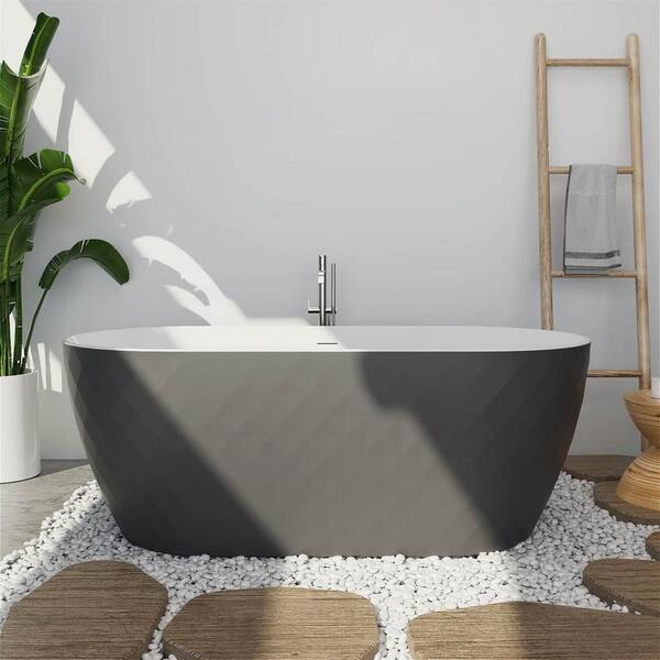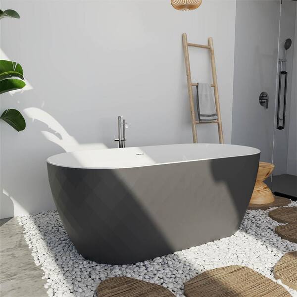 59 in. x 28 in. Freestanding Double Slipper Acrylic Soaking Bathtub with Center Drain in 37-Shades of Grey