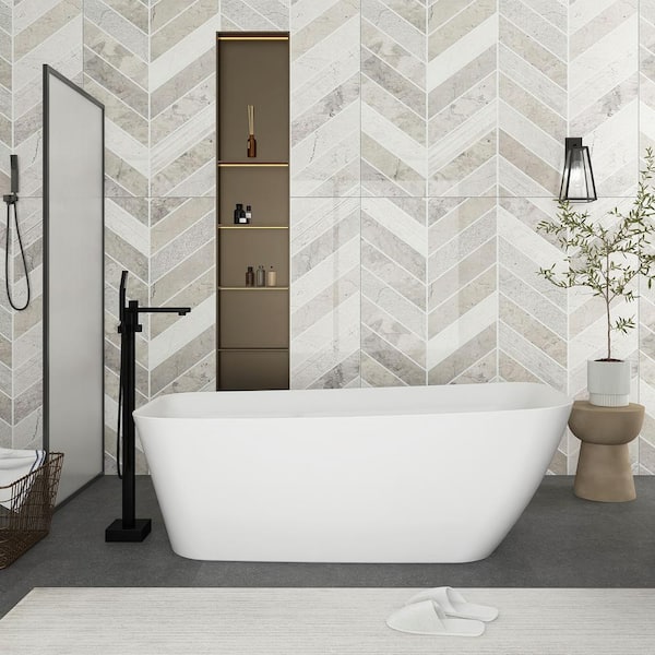 59 in. x 28 in. Soaking Bathtub with Reversible Drain in Glossy White
