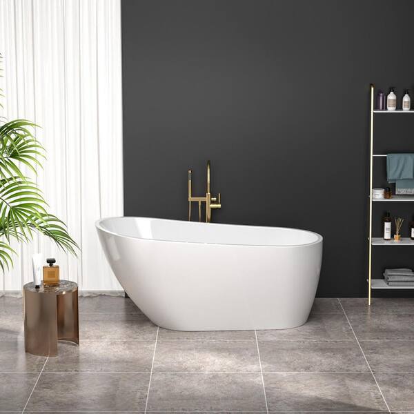 59 in. x 29.5 in. Acrylic Flatbottom Bathtub Freestanding Contemporary Soaking Tub in White/Chrome Pop-Up Drain