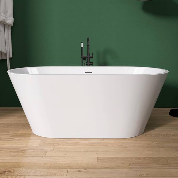 59 in. x 29.5 in. Acrylic Free Standing Deep Soaking Tub Freestanding Alone Soaker Bathtub with Removable Drain in White