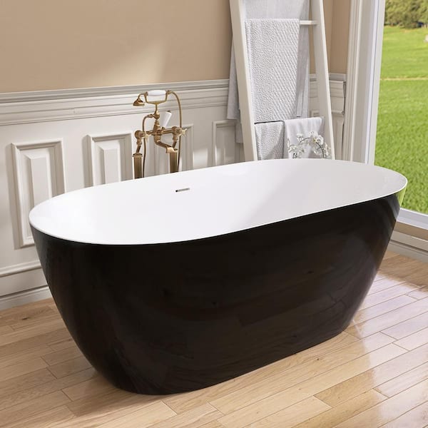 59 in. x 29.5 in. Acrylic Free Standing Flat Bottom Bath Tub Soaking with Center Drain Freestanding Bathtub in Black