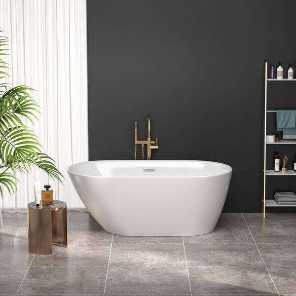 59 in. x 29.5 in. Acrylic Freestanding Flatbottom Soaking Bathtub with Center Drain in White/Chrome Pop-Up Drain