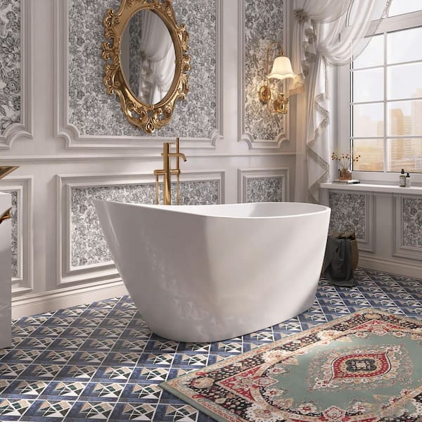 59 in. x 29 in. Acrylic Freestanding Flatbottom Soaking Bathtub in White