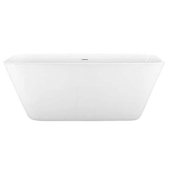59 in. x 29 in. Contemporary Soaking Tub Acrylic Freestanding Bathtub with Overflow and Drain in Gloss White