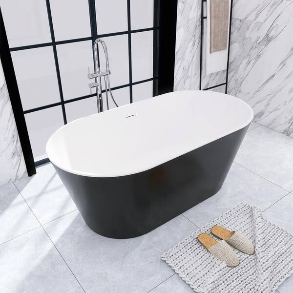 59 in. x 30 in. Acrylic Soaking Bathtub in Black with Center Drain in Polished Chrome