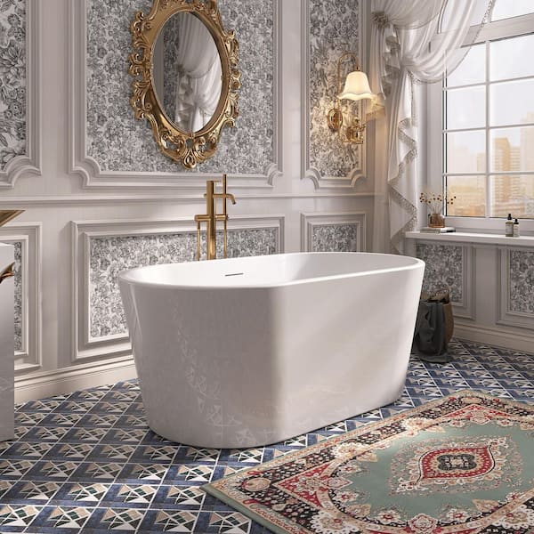 59 in. x 31.5 in. Acrylic Freestanding Flatbottom Soaking Bathtub in White