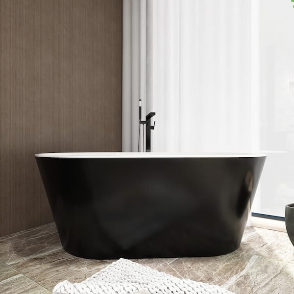 59 in. x 31 in. Acrylic Freestanding Soaking Bathtub with Chrome Overflow and Drain in Black with cUPC Certified