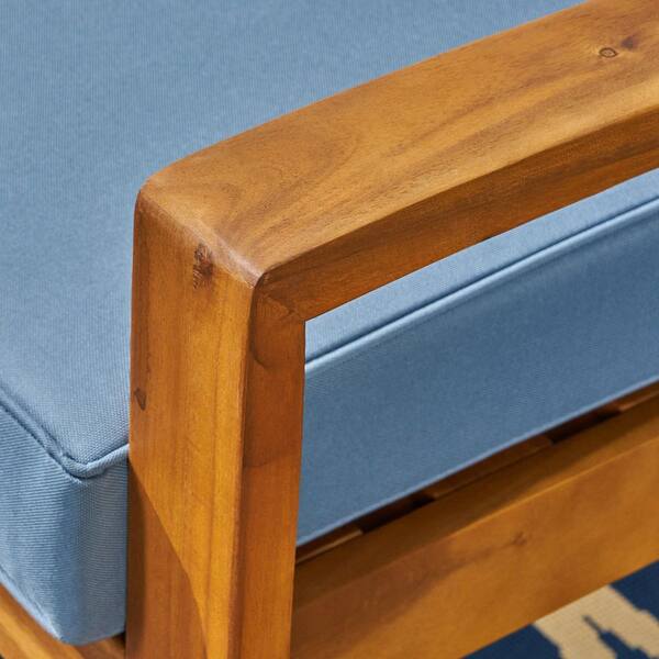 5pc L-Shaped Wood Outdoor Sofa Set, Acacia Sectional Patio Sofa with Blue Cushions and Coffee Table Conversation Set
