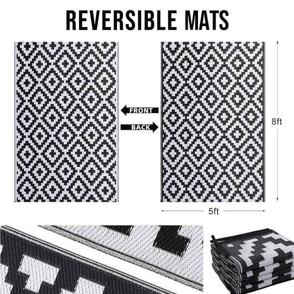 5x8 ft Waterproof Outdoor Rug, Reversible Plastic Straw Rug for Camping, RV, Porch, Deck, Backyard, Balcony, Picnic