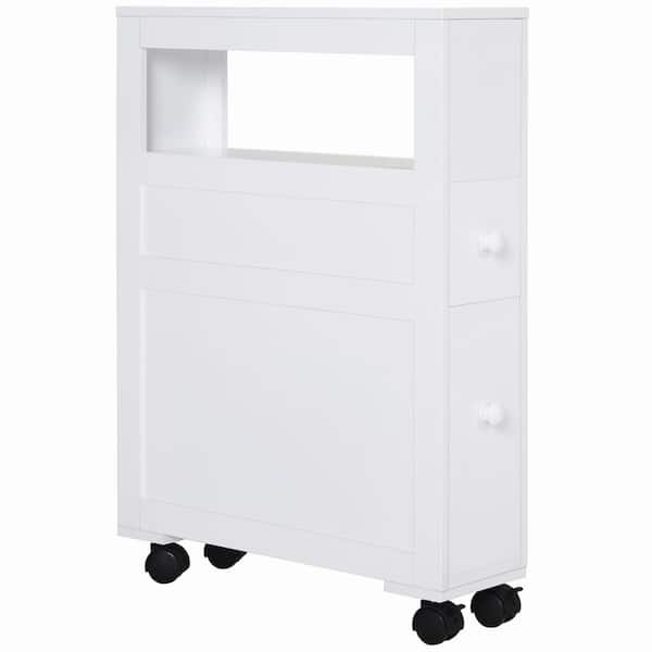6.25 in. W x 20.5 in. D x 28.25 in. H White Wood Rolling Narrow Linen Cabinet with Wheels, Drawers