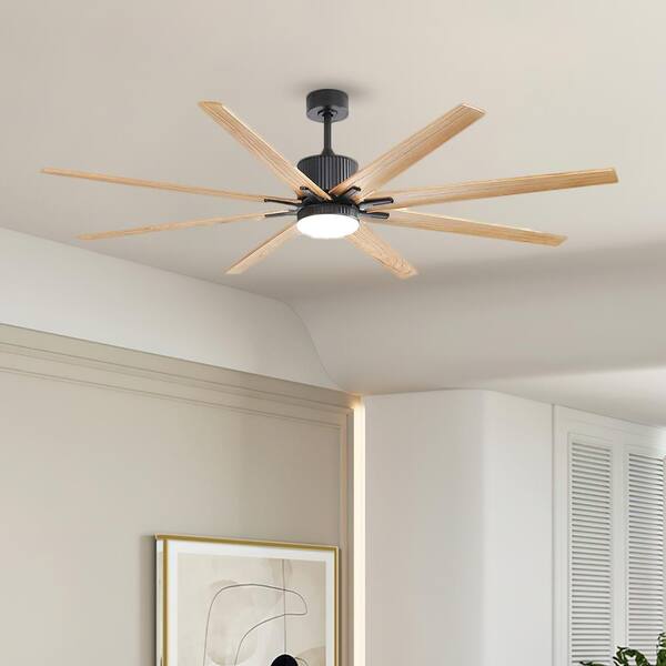 6.4 ft. Integrated LED Indoor Windmill Natural Ceiling Fan Lighting with 8 Solid Wood Blades and Remote Control