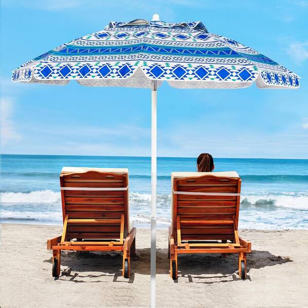 6.5 ft. Metal Tilt Beach Umbrella in Geometric Blue