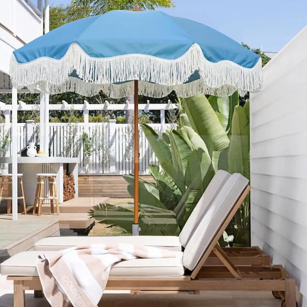 6.5 ft. UPF50+ with Tassels Boho Fringe Umbrella (Blue)
