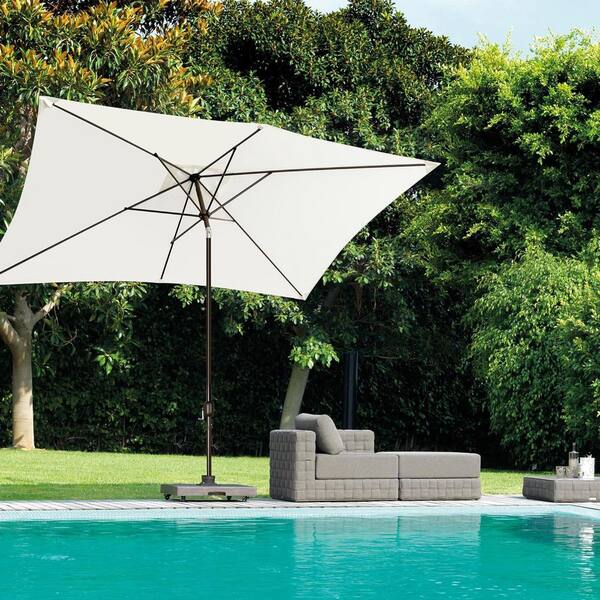 6.5 ft. x 10 ft. Metal Market Tilt Patio Umbrella in Ivory