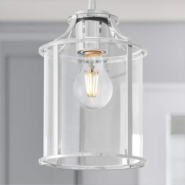 6.54 in. White Metal Lantern with Clear Glass Pendant Light Shade with 2.25 in. Lip Fitter
