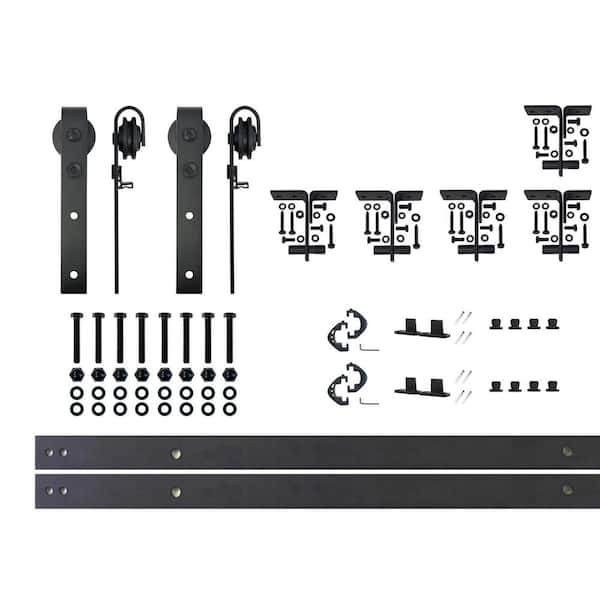 6.6 ft./79 in. Black Rustic Ceiling Mount Double Track Bypass Sliding Barn Door Track and Hardware Kit for Double Doors