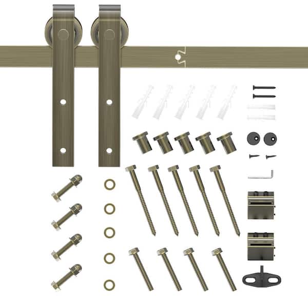 6.6 ft. J-Shaped Sliding Barn Door Kit for Single Door, Bronze Steel