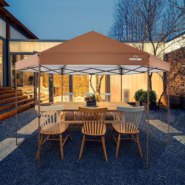 6.6 ft. x 9.2 ft. Brown Outdoor Instant Pop Up Hexagon Canopy with Sidewalls