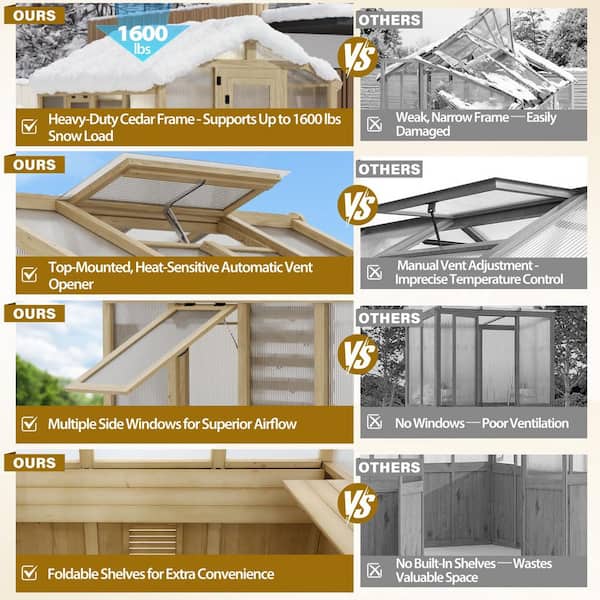 6.7 ft. W x 7.8 ft. D x 7.7 ft. H Wood Greenhouse with Double-Wall Poly Windows, with Automatic Roof Vent
