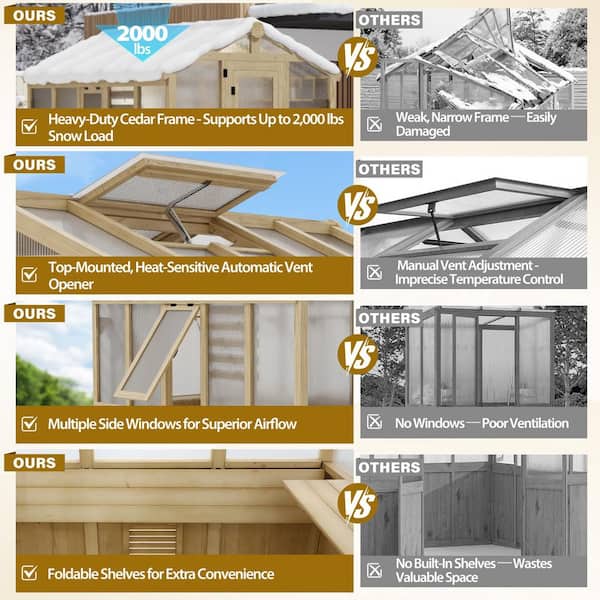 6.7 ft. W x 9.7 ft. D x 7.7 ft. H Wood Greenhouse with Double-Wall Poly Windows, with Automatic Roof Vent