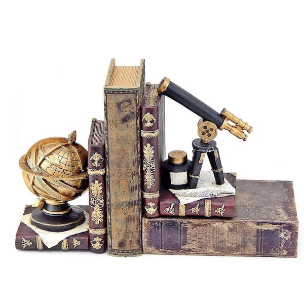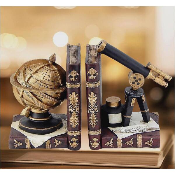 6" Antique Space Decor for Home Shelves,Vintage Retro Astronomy Bookends,Tellurion, Telescope & Celestial Globe Design