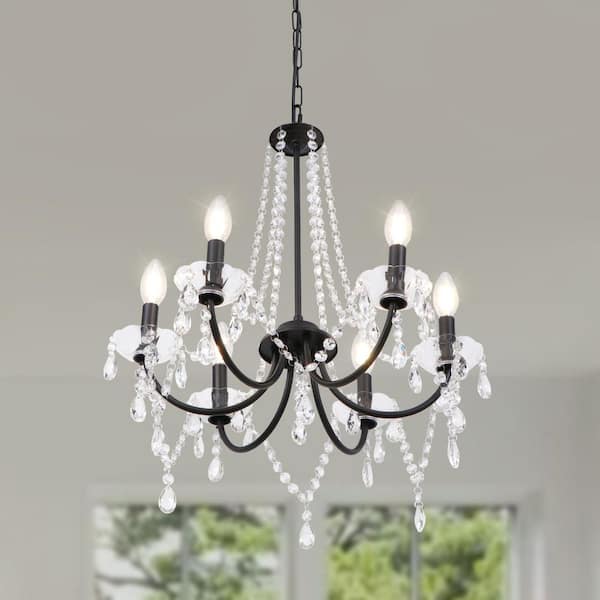 6-Light Black Empire French Country Candle Style Crystal Chandelier for Living Room Foyer Kitchen Island