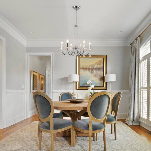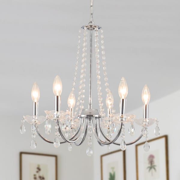 6-Light Chrome Classic/Traditional Chandelier with Crystal Accents for Living Room Bedroom Kitchen Study