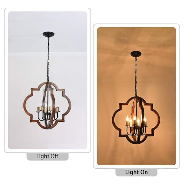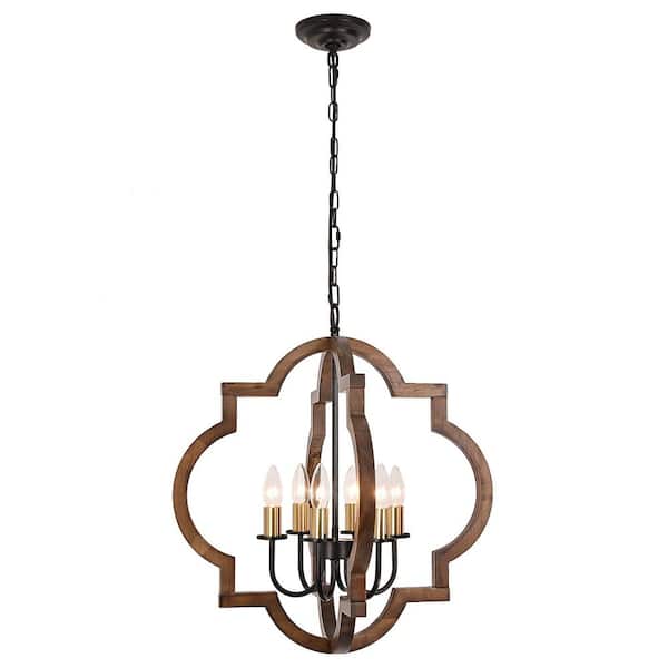 6-Light Rustic Dining Room Island Wood Pendant Lighting, 21.65'' Farmhouse brown Candlestick Chandelier