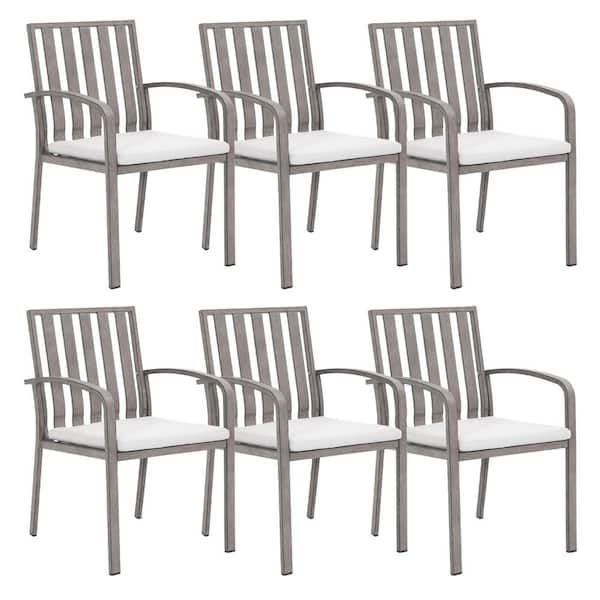 6 Piece Aluminum Outdoor Dining Chairs with White Cushion Patio Metal Seating Bistro Chair for Garden, Backyard, Lawn