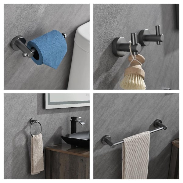 6-Piece Bath Hardware Set with 2 Towel Bars, Toilet Paper Holder, 2 Robe Towel Hooks, Towel Ring in Gunmetal