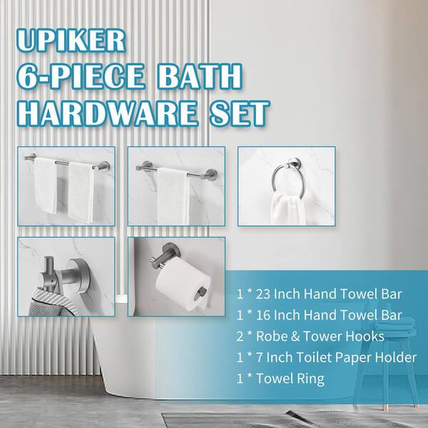 6-Piece Bath Hardware Set with Towel Ring Toilet Paper Holder and Towel Hook and Towel Bar in Gun Grey