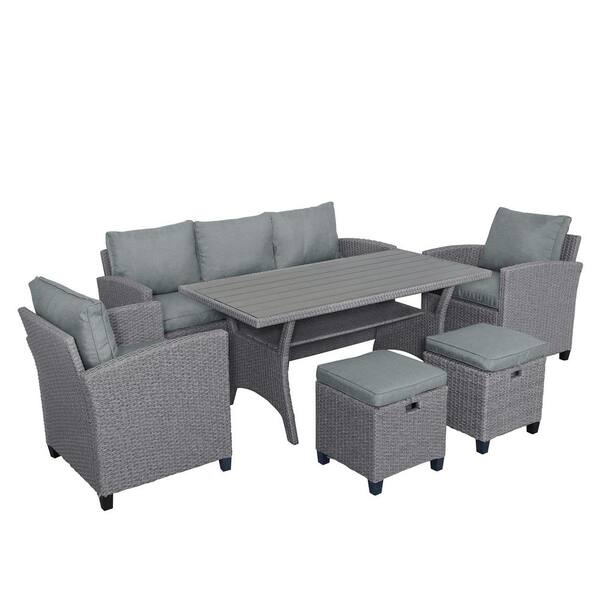 6-Piece Gray PE Rattan Wicker Outdoor Patio Sectional Sofa Set with Gray Cushions