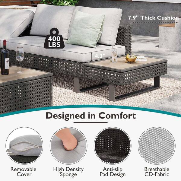 6-Piece Metal Outdoor Diamond Weave Patio Sectional Furniture Set with Extendable Coffee Table, Ice Bucket, Cushions