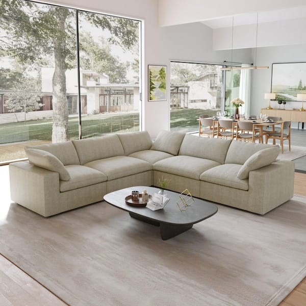 6-Piece Modular 120.5 in. Deep Seat Linen Sectional Sofa with Storage and Removable Covers & Cushions in Brown 7-Seater