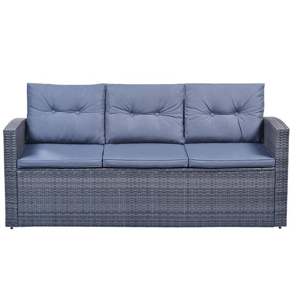 6-Piece PE Wicker Outdoor Patio Seating Sectional Sofa Set with Coffee Table, Footstool, Removable Grey Cushions