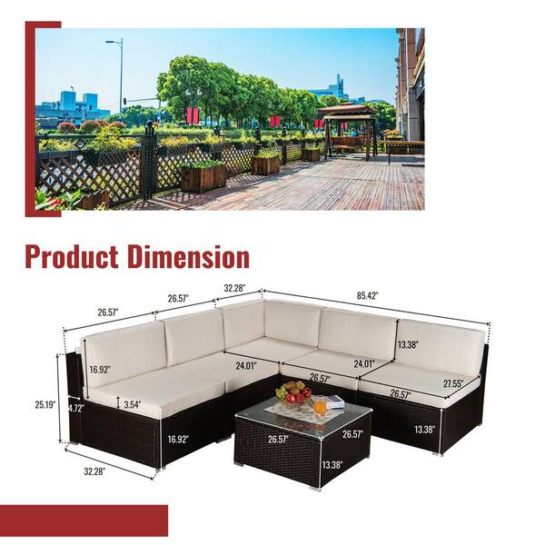 6-Piece Patio Conversation Set Outdoor Brown Rattan Wicker Sectional Sofa Seating Set for Backyard Garden, Beige Cushion