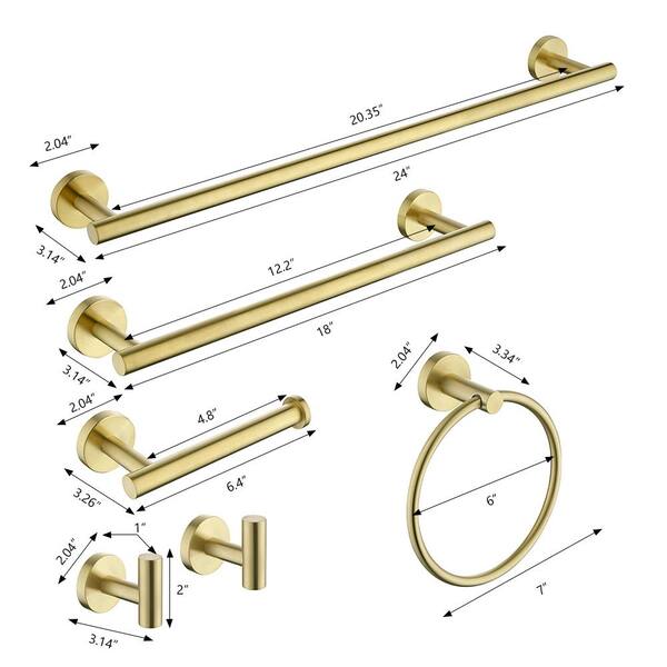 6-Piece Stainless Steel Bathroom Towel Rack Wall-Mounted Bath Accessory Type in Gold