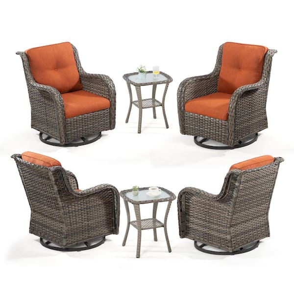 6-Piece Wicker Patio Conversation Set with All-Weather Swivel Rocking Chairs Orange Cushions