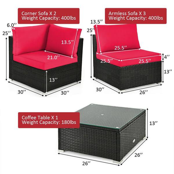 6-Piece Wicker Patio Conversation Set with Red Cushions