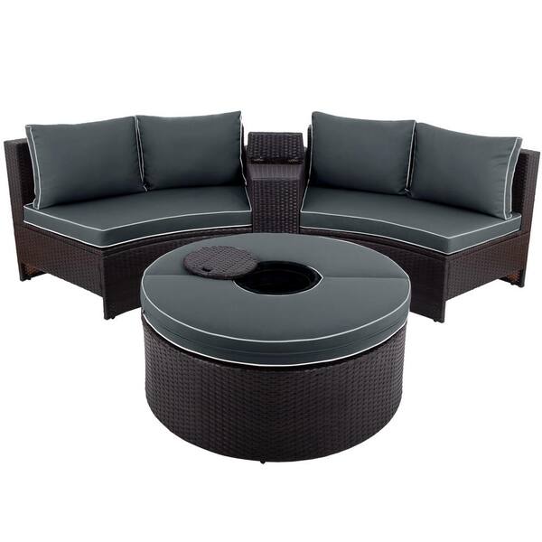 6-Pieces PE Wicker Outdoor Sectional Conversation Set Brown Half Round Patio Rattan with Gray Cushions