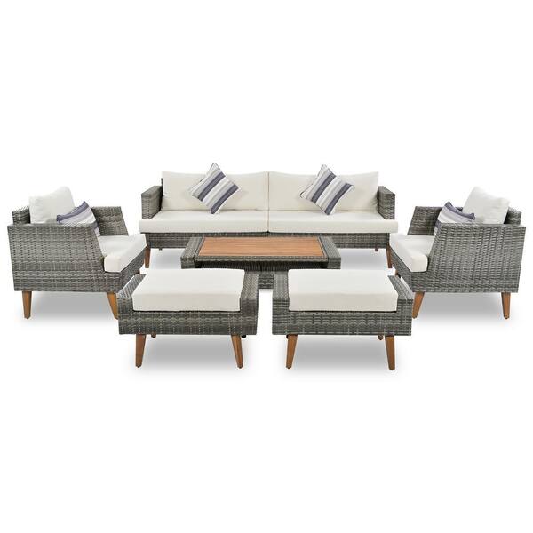 6 Pieces Wicker Patio Furniture Sets Outdoor Conversation Set with Storage Table and Cushions, Beige