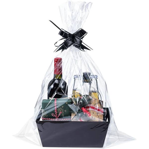 6 Set Sturdy Kraft Gift Basket Kit with Cellophane Wrap and Pull Bows for Various Occasions 11.14 x 9.25 x 6.38 Inches