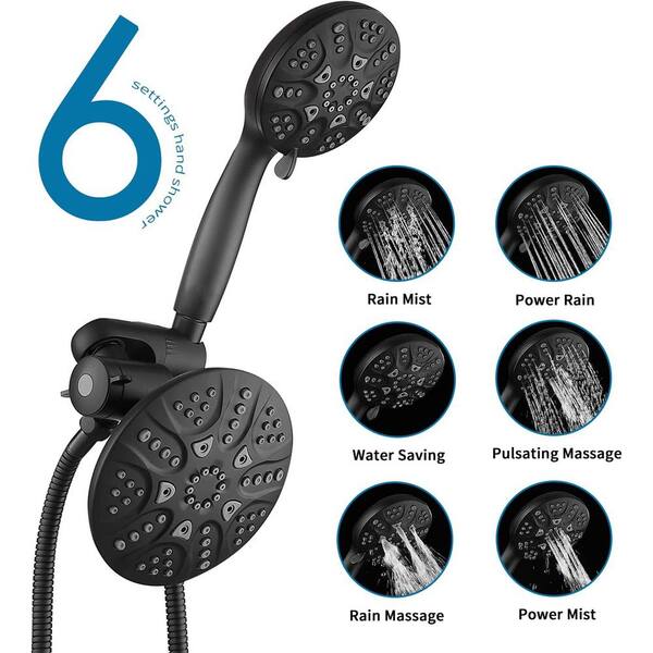 6-Spray Patterns with 1.8 GPM 6 in. Wall Mount Handheld Dual Shower Head Adjustable in Spot Resist Matte Black